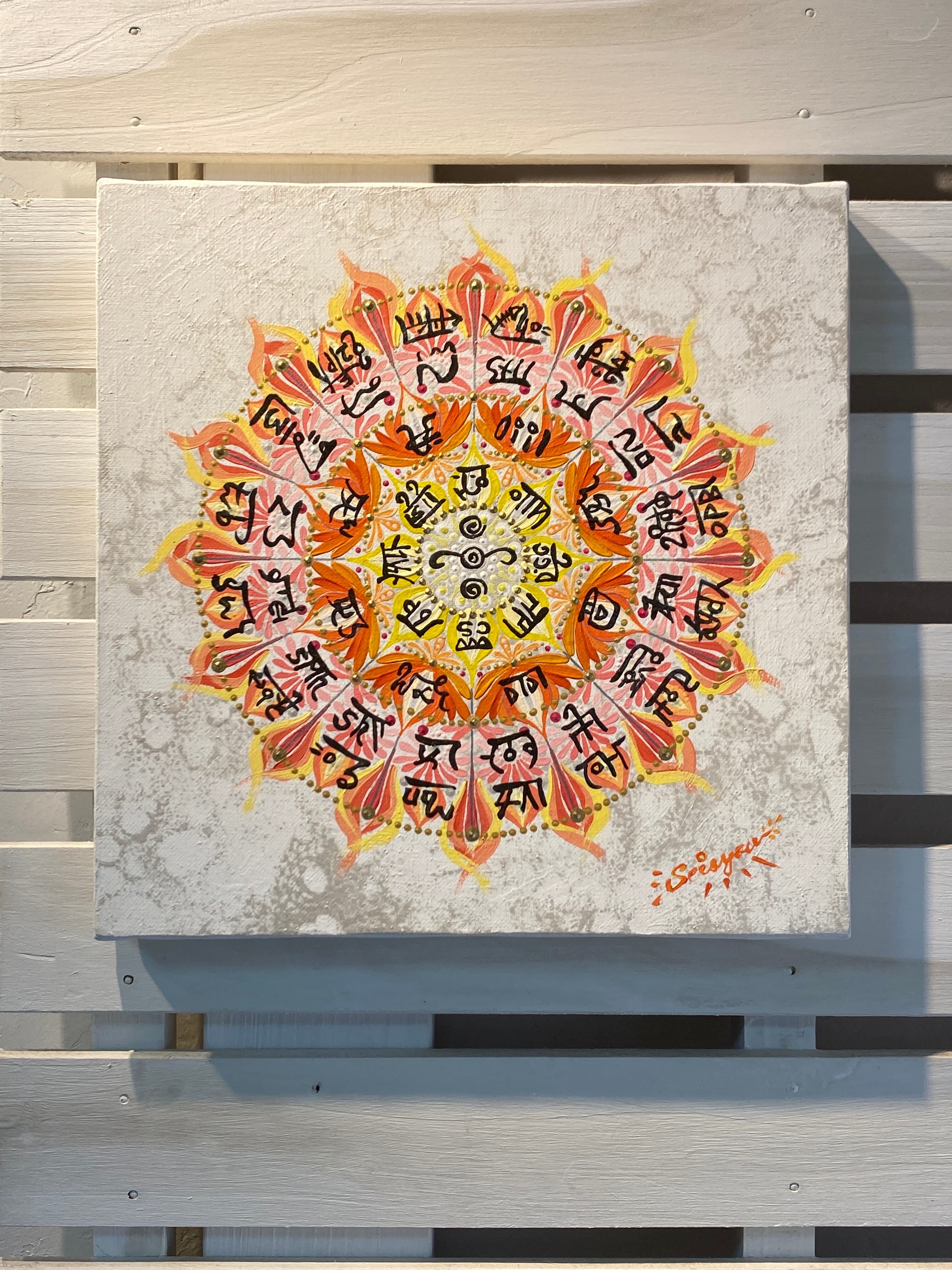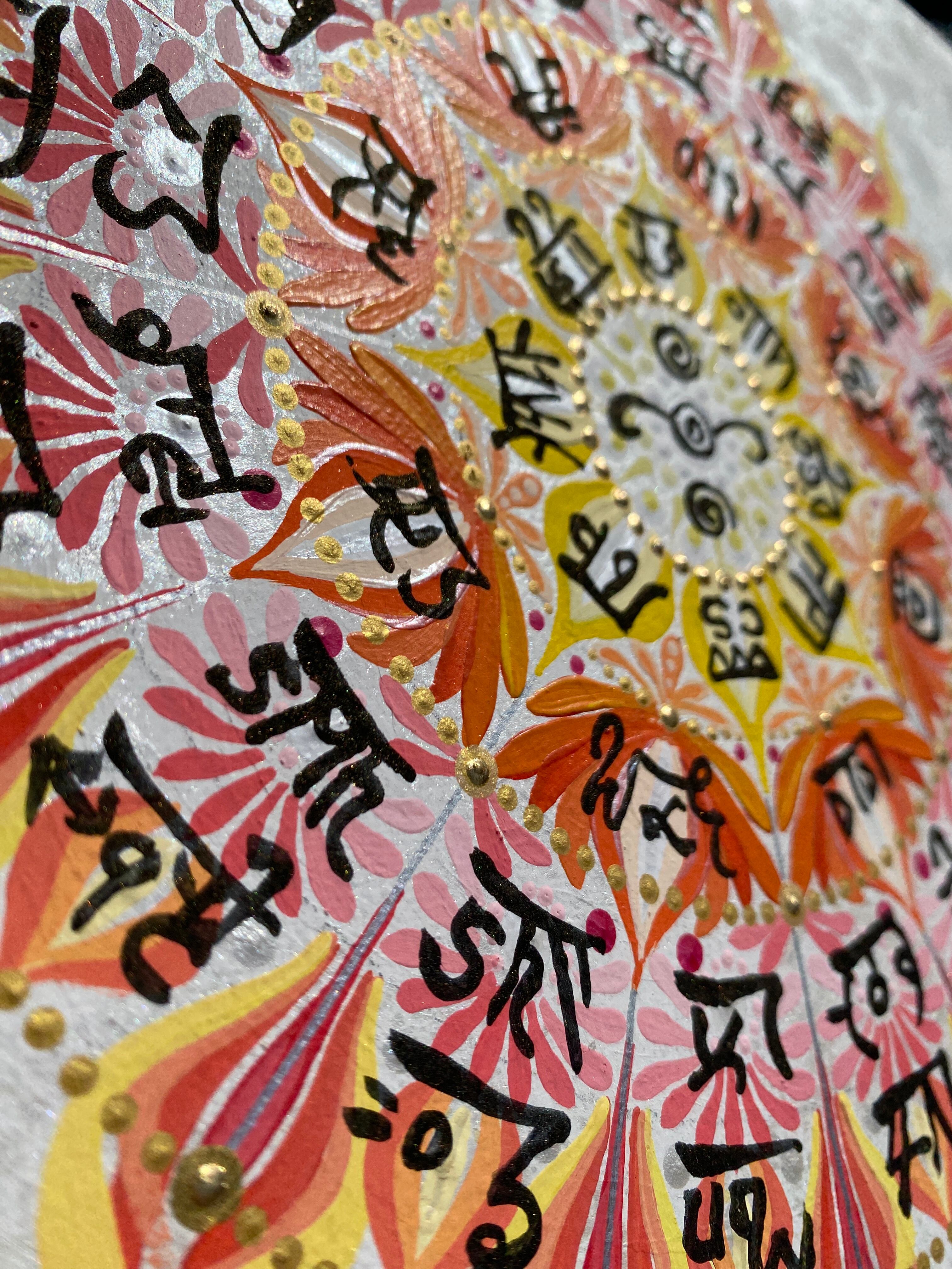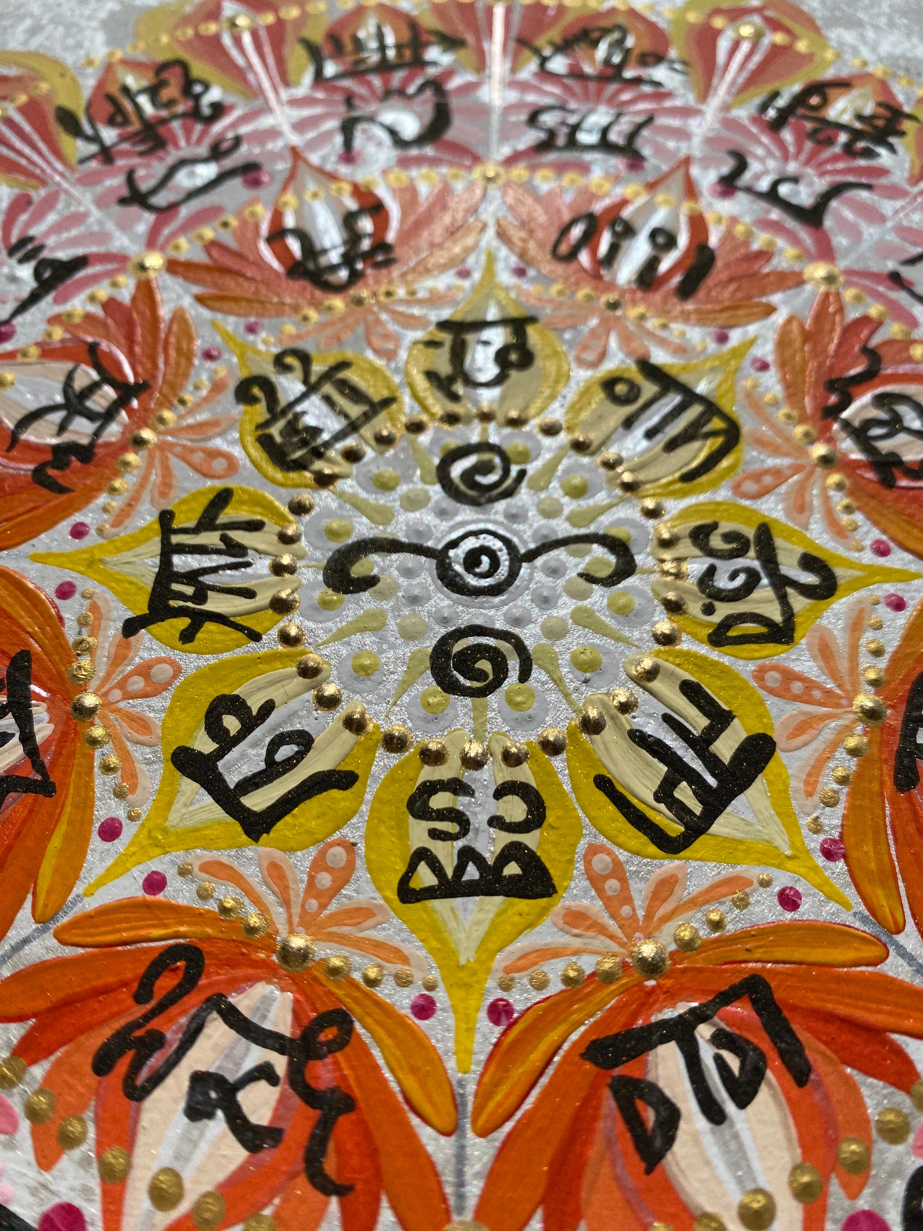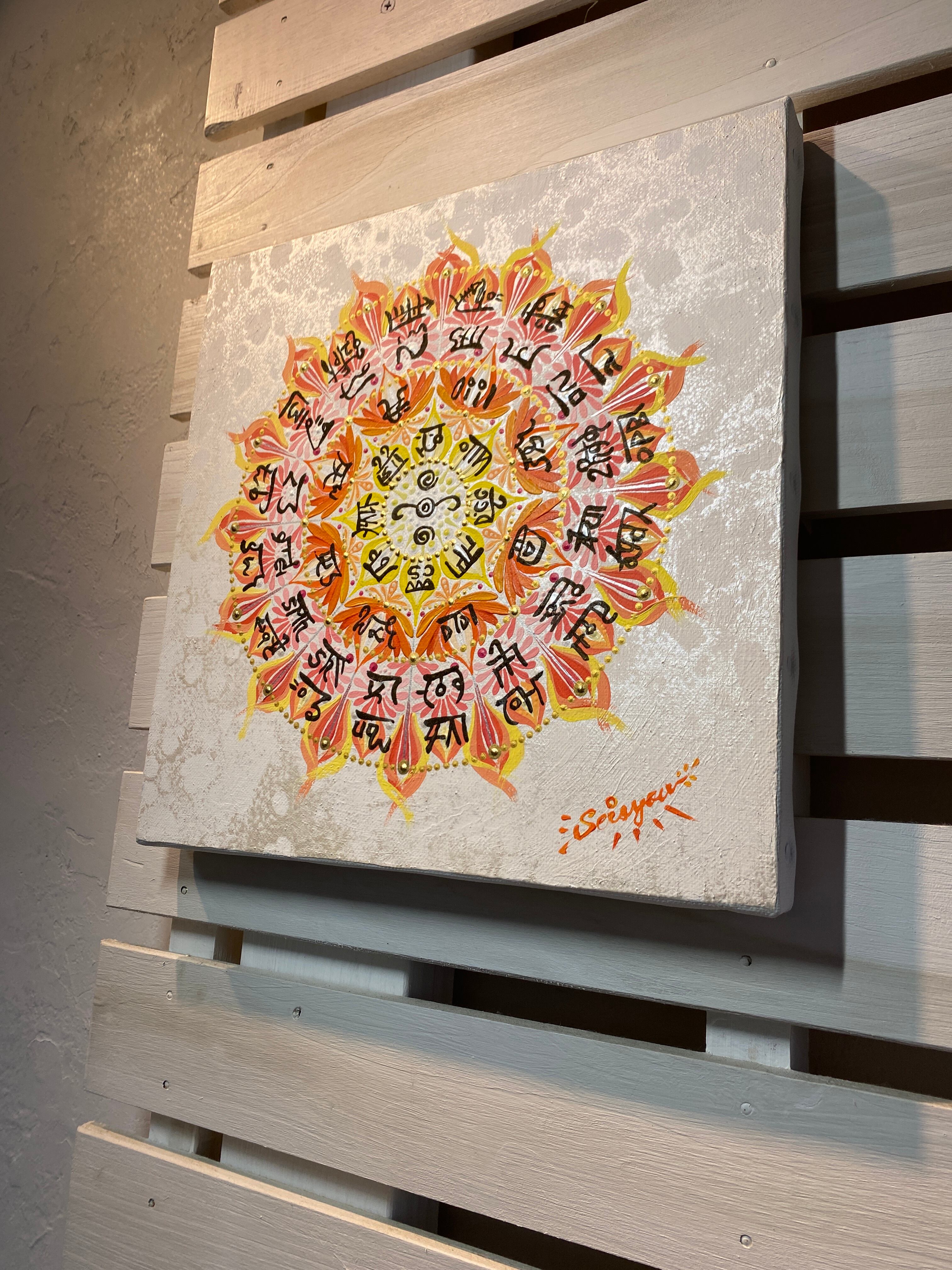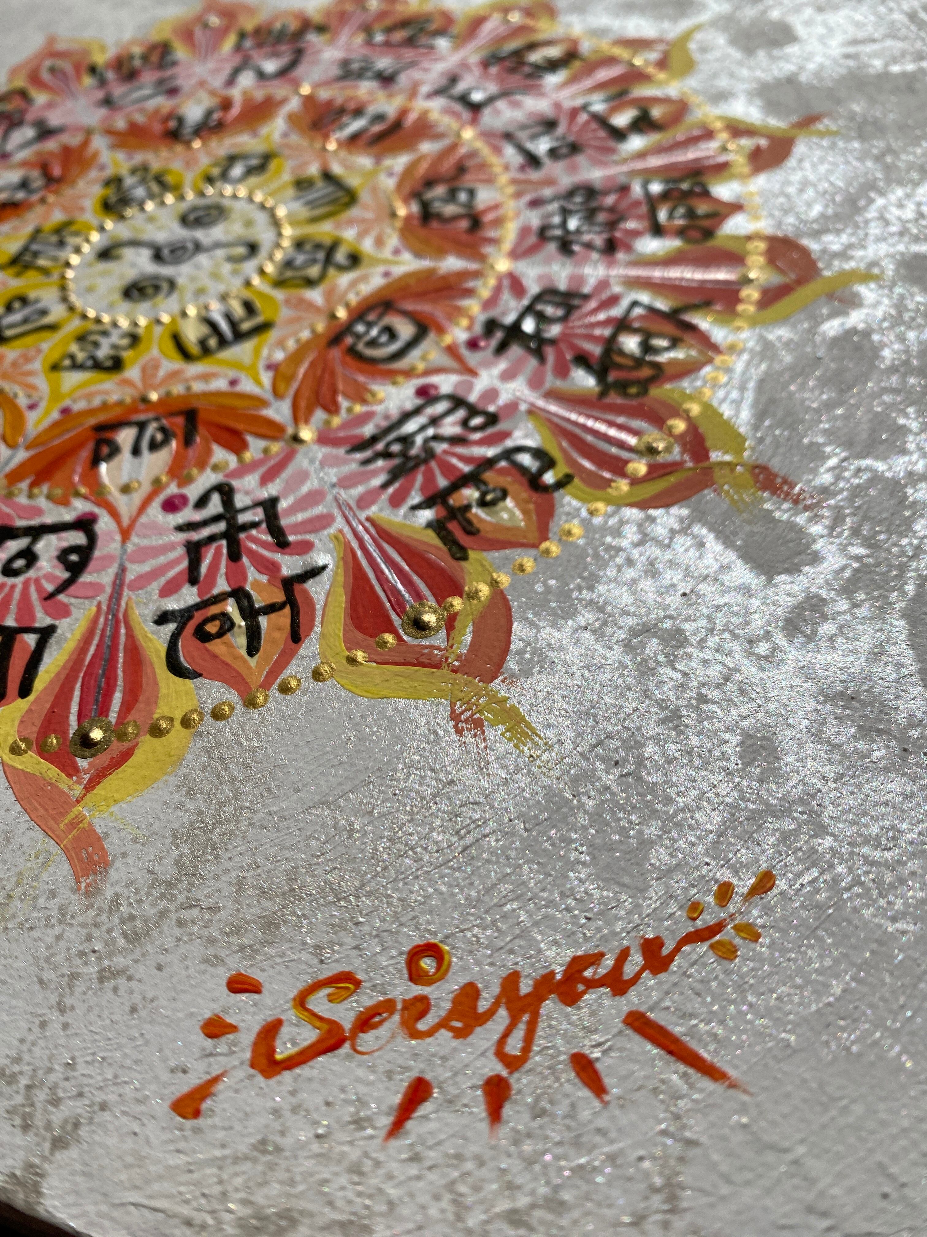 龍体文字を円環に巡らせ、祈りが花開く瞬間を描いた一点ものの原画作品です。